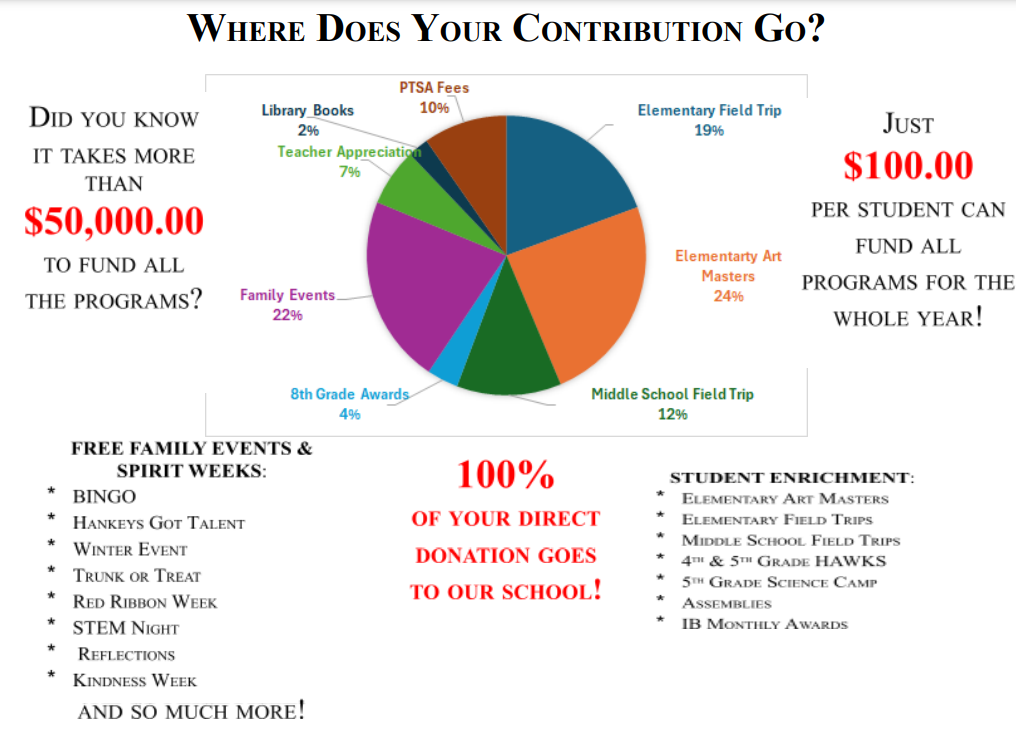 If it’s an option for your family, please donate online or bring a check made out to “Carl Hankey PTSA” to the front office.