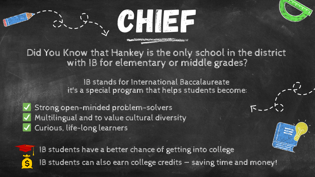 CHIEF provides oversight, collects and manages contributions from individuals, businesses, and organizations to support the International Baccalaureate program at Carl Hankey School. The foundation supports programs to maintain IB certification.