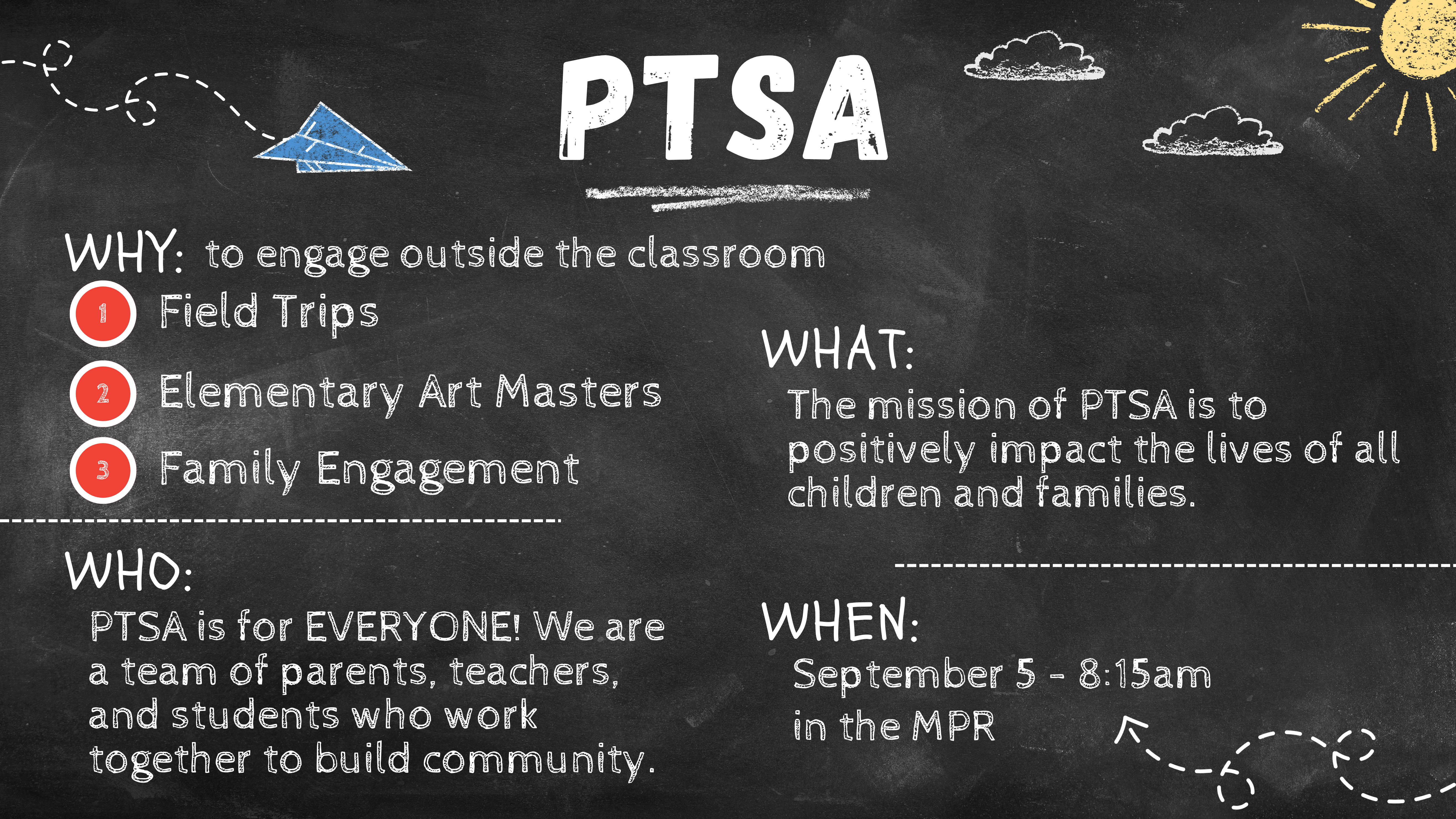PTSA is a volunteer organization that looks for opportunities for our students. The mission of Carl Hankey PTSA is to positively impact the lives of all children and families.