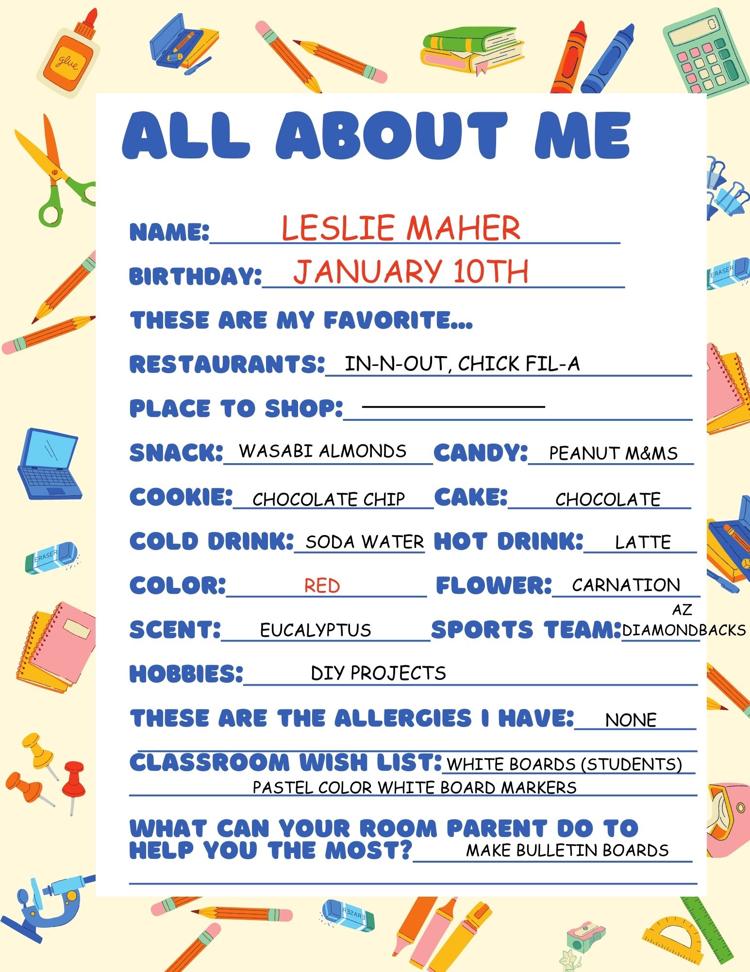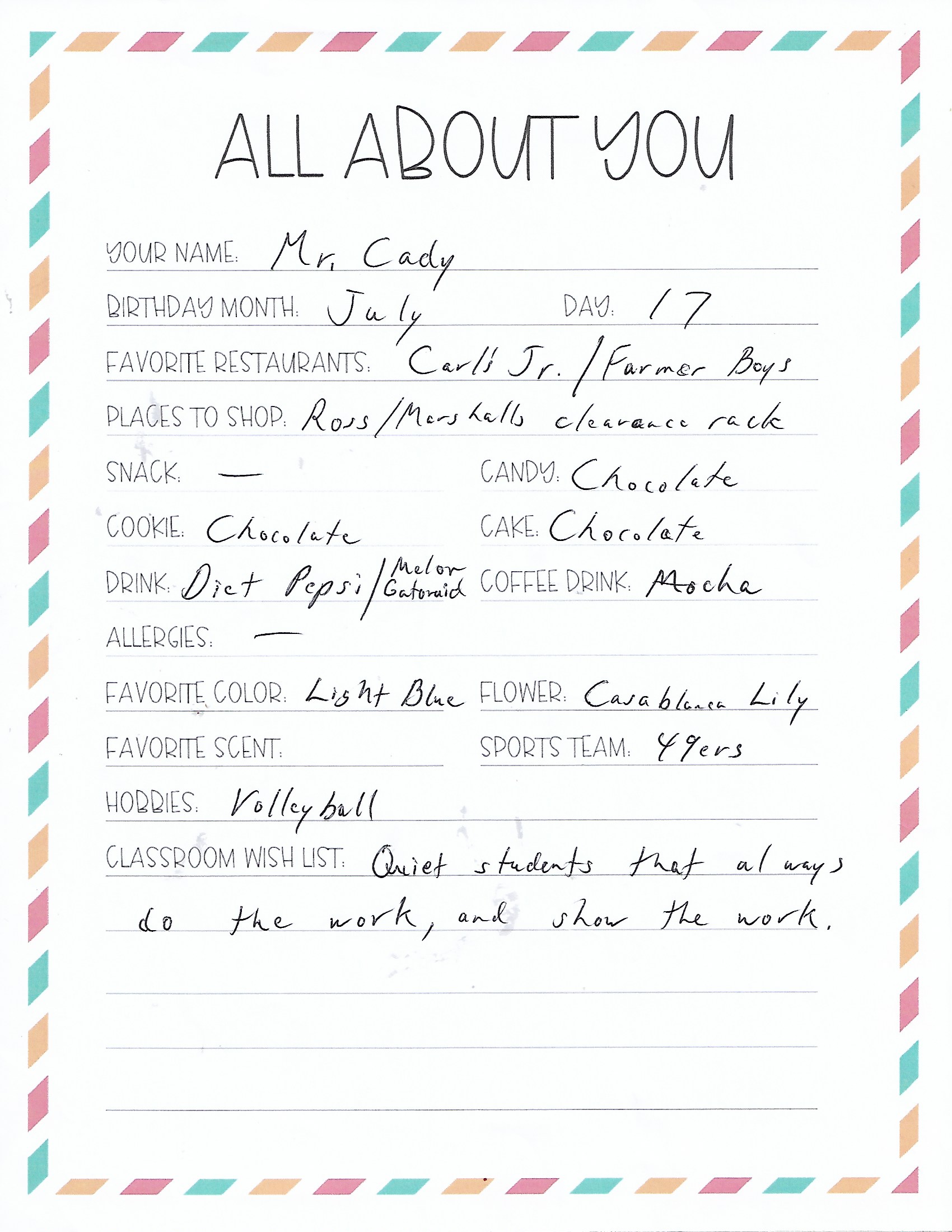 Carl Hankey is home to some of the most outstanding teachers. If you want to say thank you to one of our respected and beloved teachers or staff, here are some of their favorite things: